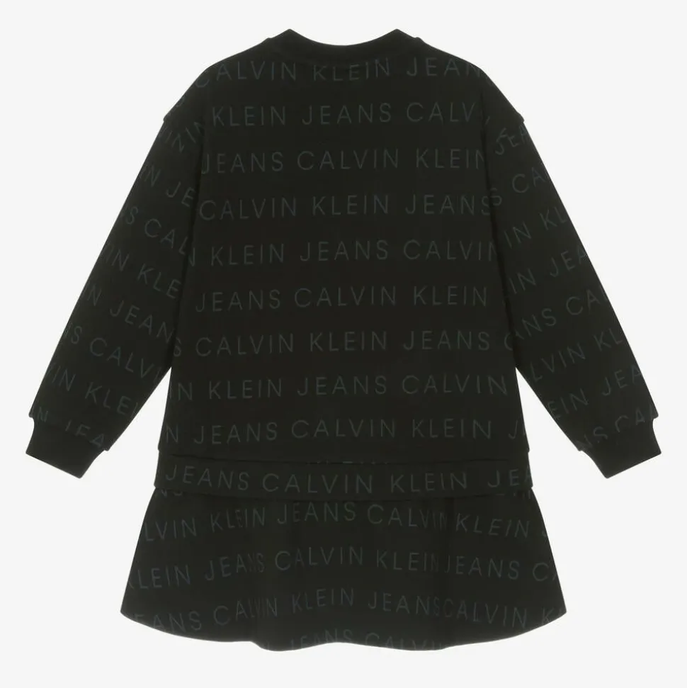 From Calvin Klein, a casual black dress for girls made from cotton jersey. With long sleeves, this mid-weight dress is ideal for easy dressing on cooler days. A repeated tonal logo print ensures brand recognition in a subtle, cool way.