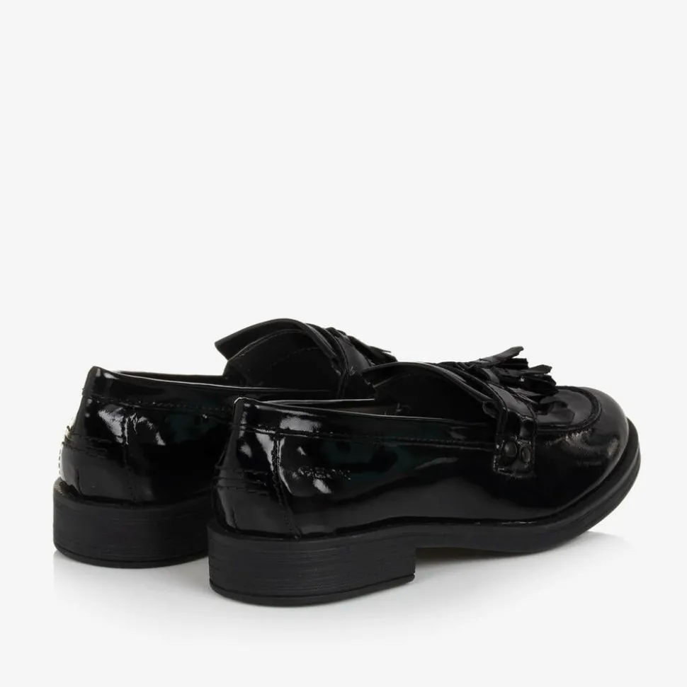 Girls patent leather loafers by Geox, with classic fringing and tassel detail. Ideal school shoes, they are breathable, antibacterial and shock absorbing. They are waterproof, and have a non-slip, non-marking rubber sole.