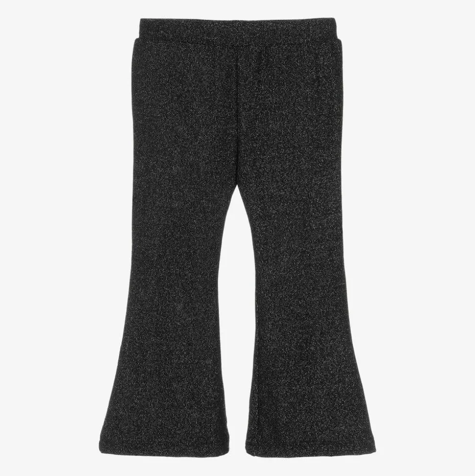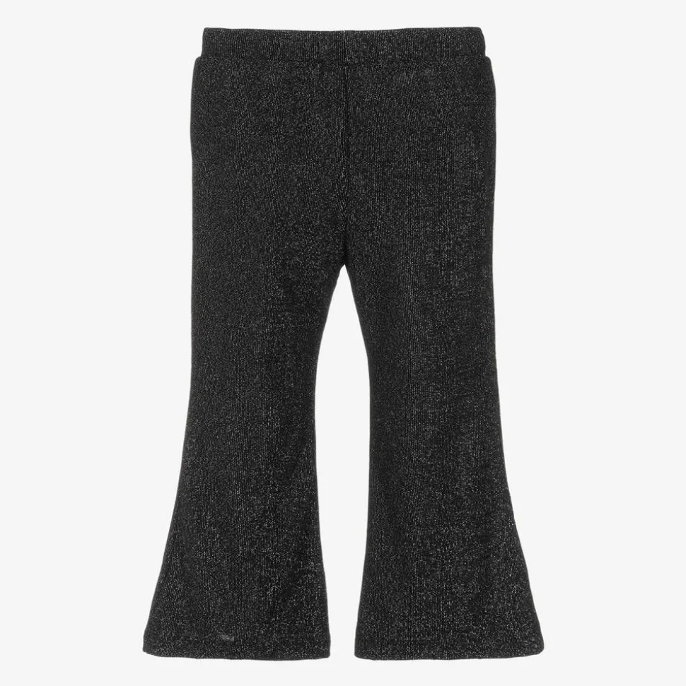 Stylish black flared trousers for girls by Name It. Great for a party look, they are made from a smooth and stretchy fabric that is woven with silver metallic threads for a shimmery finish. Easy to pull on, they have an adjustable waist to ensure a comfortable fit.