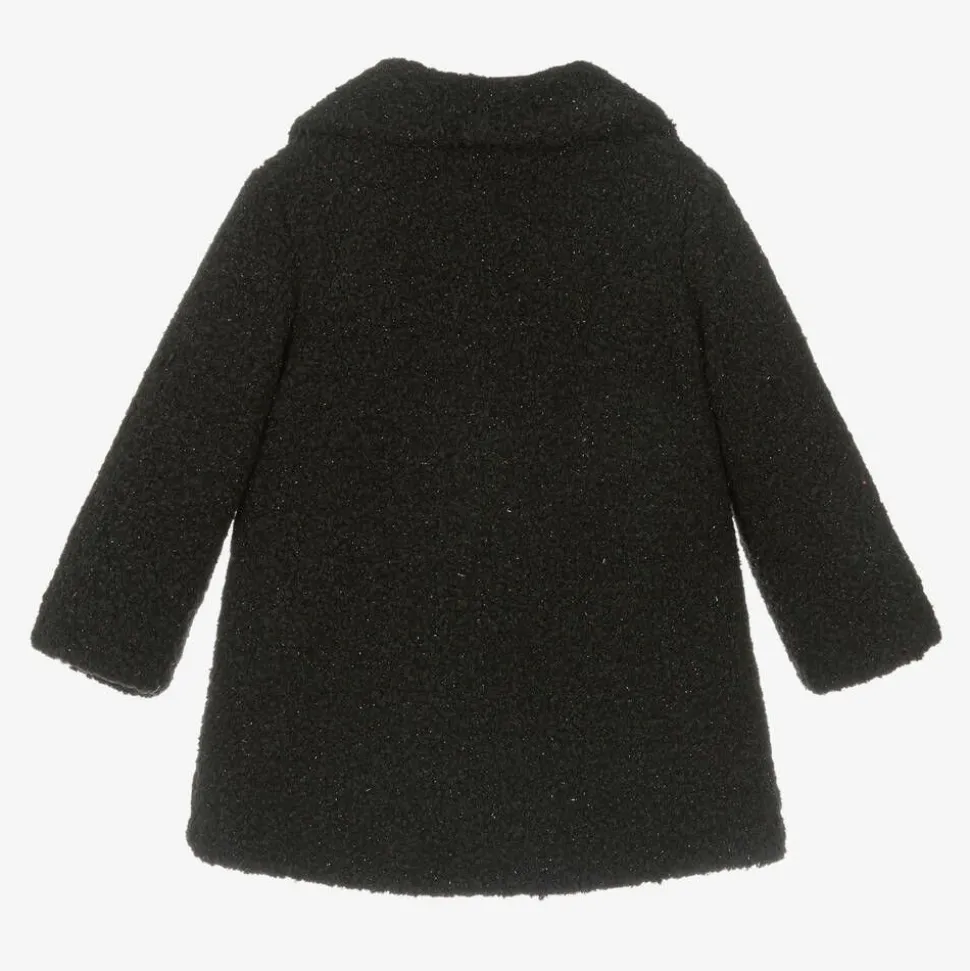 Girls Black Sparkly Bouclé Coat
