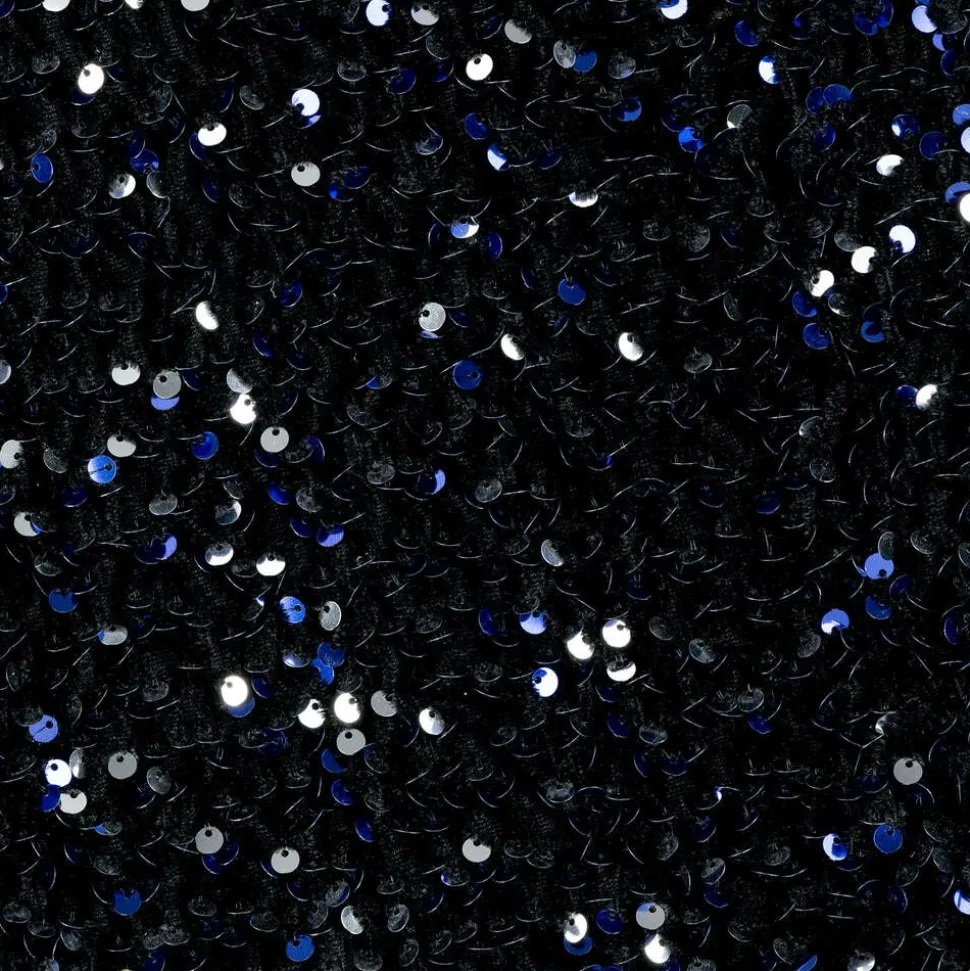Super sparkly, black velour Name It top for girls, covered in shiny silver and blue sequins. Stylish yet comfortable for a glamorous party look, it is simply designed with a stand-up collar, long sleeves and a stylish keyhole button fastening on the back. A soft and stretchy jersey lining adds a gentle feel against the skin.