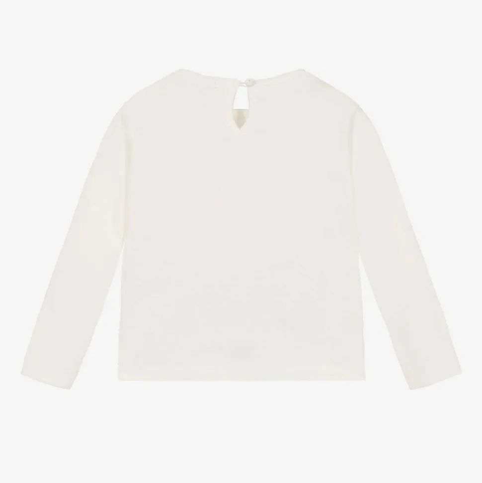 Girls Ivory Cotton Teddy Bear Top