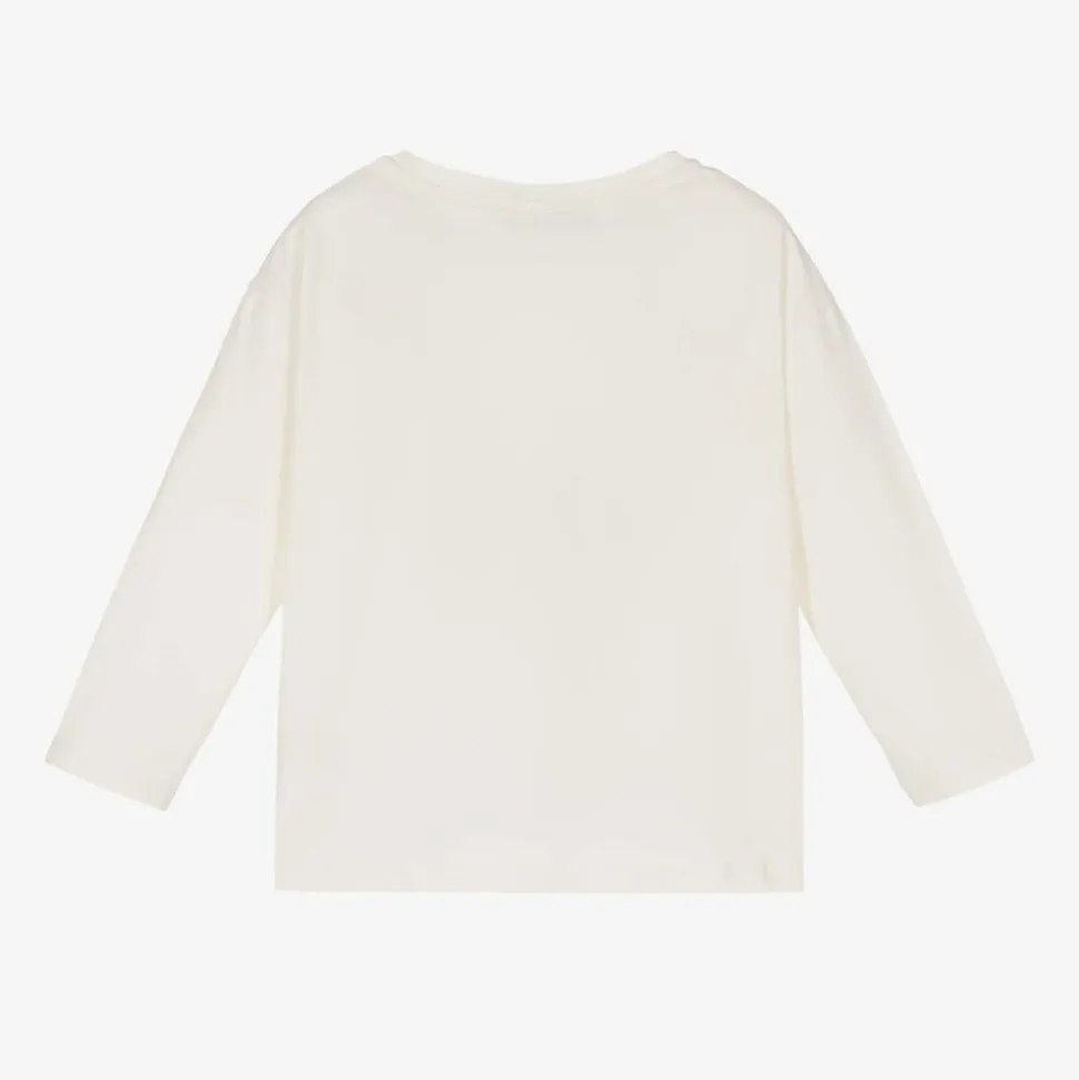 Ivory long-sleeved top for girls by AIGNER, made in comfortable cotton jersey. To elevate this casual wardrobe staple, it is printed with a glittery gold chain motif, featuring the German brand's signature logos.