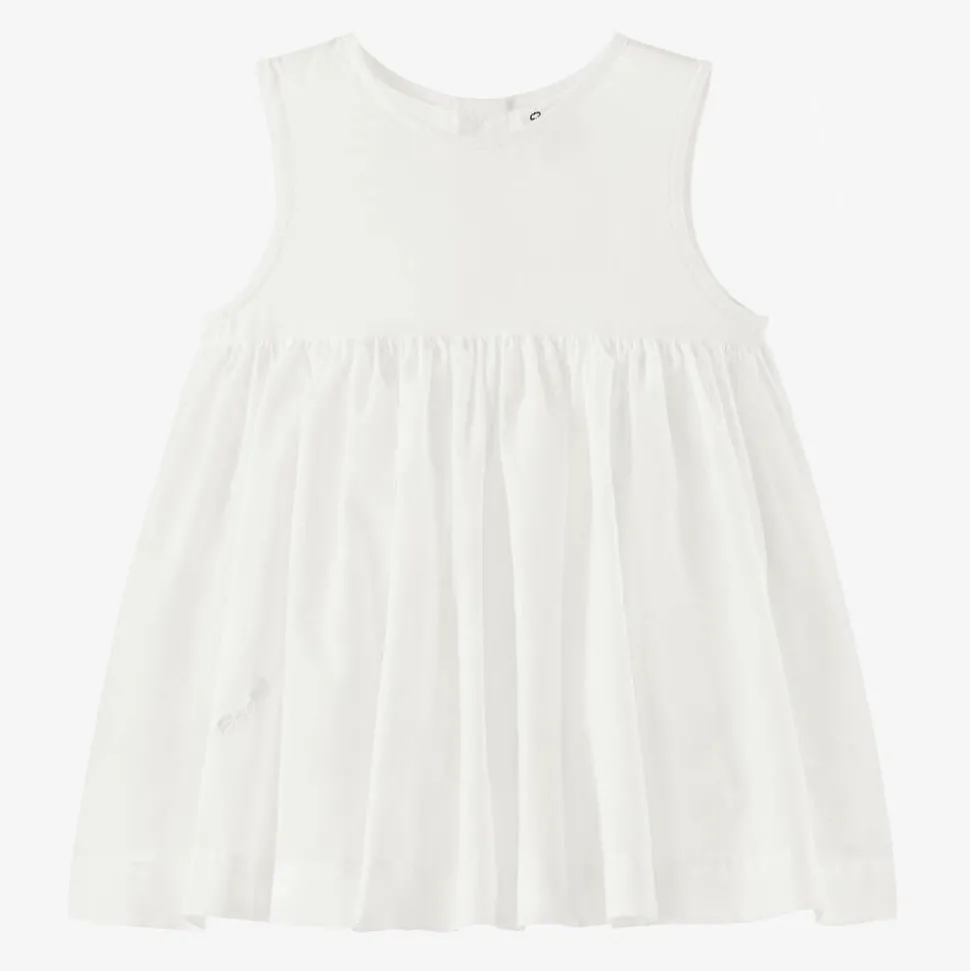 Little girls ivory petticoat by Sarah Louise, softly woven in a cotton blend. Ideal for adding a fuller shape underneath dresses, this sleeveless style is plain ivory and fastens with discreet buttons on the back. The voluminous skirt is formed by layers of soft tulle and plain woven fabric.