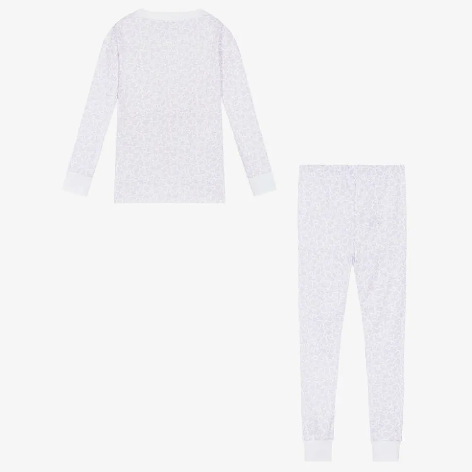 Patterned with a beautiful lilac floral print, a pair of white Pima cotton pyjamas for girls by Kissy Kissy. Snug-fitting, they are made in super soft and comfortable jersey, ideal for a good night's sleep.