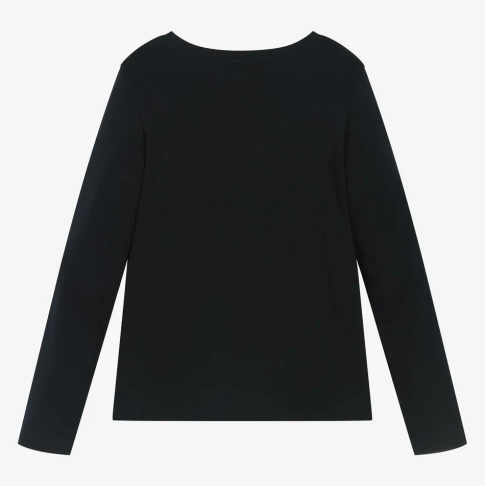 Navy blue top for girls by ChloƩ, soft and comfortable in organic cotton jersey. With signature detailing from the French fashion house, the front is embroidered with romantic florals and the ChloƩ logo, all in tonal blue.