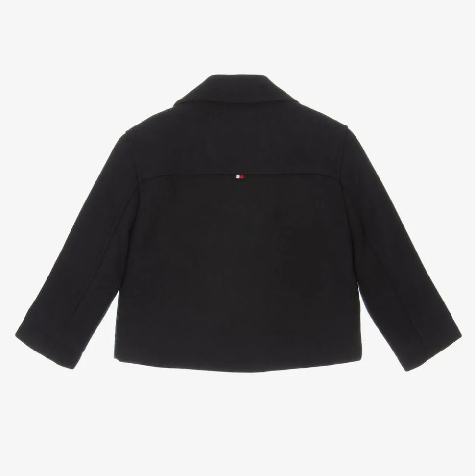 A classic and stylish look for girls, this navy blue peacoat is from American brand Tommy Hilfiger. It is made from a felted wool blend and features a double-breasted design with notched lapels, front pockets, and branded button fastenings. The jacket is lightly padded for warmth and has a lovely contrast check silky lining. Tricolour tabs on the front and back, along with a flag logo plate on one sleeve, add a discreet designer touch.