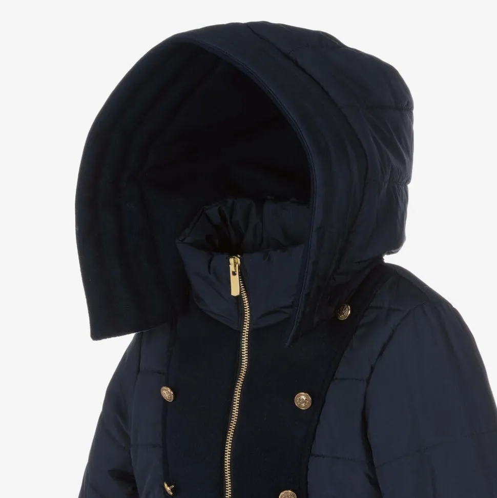Girls Navy Blue Hooded Puffer Coat