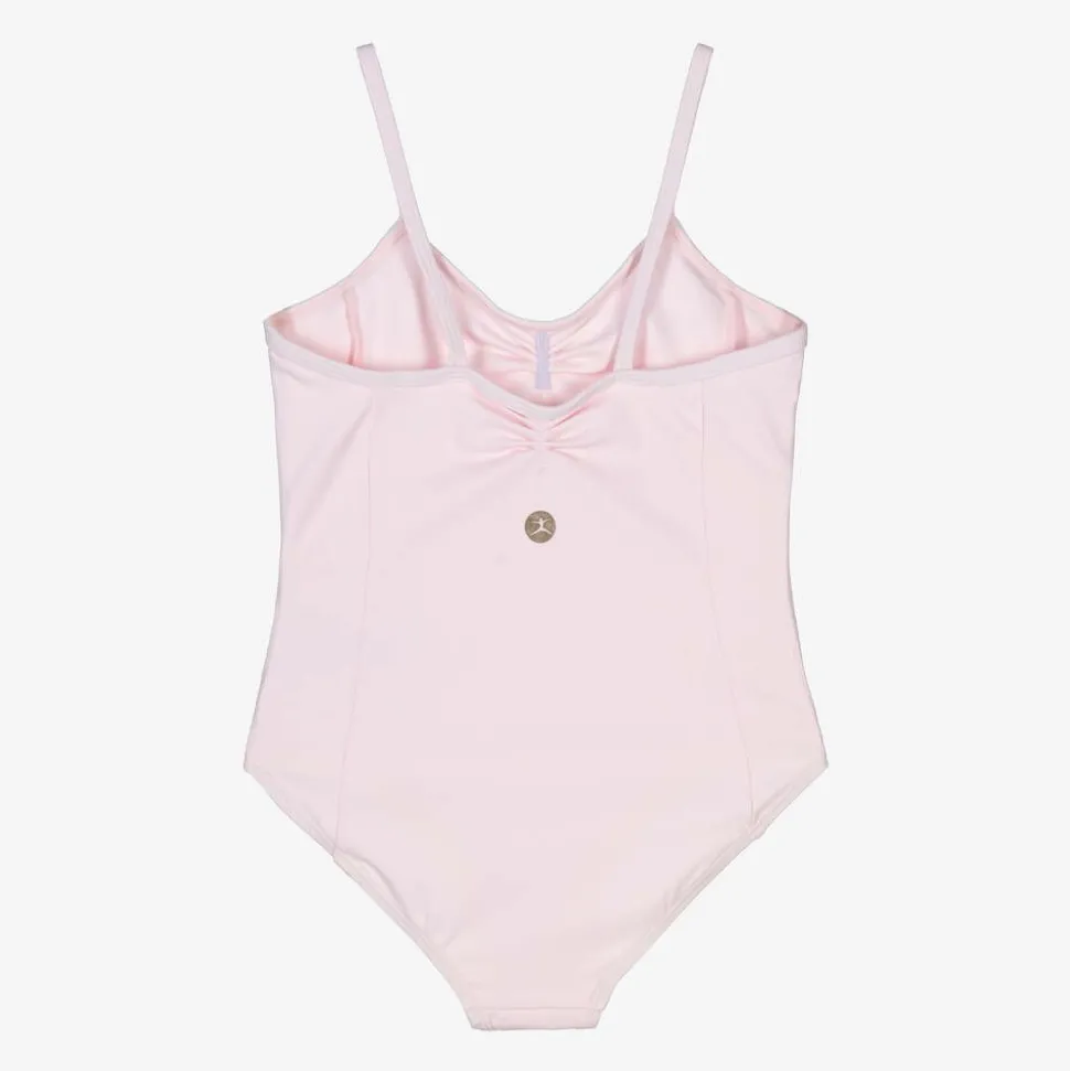 Pink camisole leotard for girls by dancewear designer, Danskin. Made using the designer's super soft four-way stretch fabric for free movement, it is ideal for dance classes, yoga and exercise. The slim straps complement the delicate V-neckline, with ruching for style. It is comfortable, breathable and is completed by the brand's rose gold logos on the front and back.