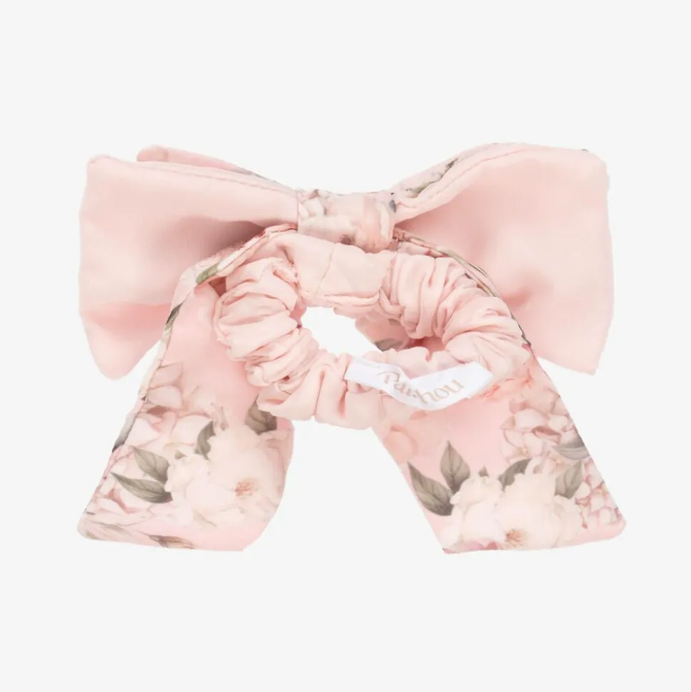 Exclusive to Childrensalon, this special occasion pink hair scrunchie for girls is by Patachou. Made in soft chiffon fabric for comfortable wear, the stretchy band has a beautiful bow decoration patterned in a charming floral print. An elegant design, it is sure to add a touch of sophistication to her outfit.