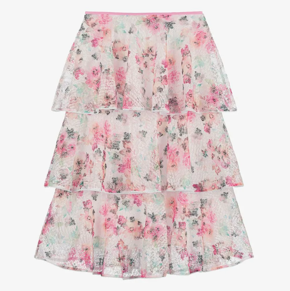 A pretty tiered skirt for older girls by American brand Nessi Byrd, great for beachwear and stylish holiday looks. With an ultraviolet protection factor of 50, the white lace fabric is beautifully patterned with watercolour-style flowers in hues of pink, green and yellow. Ankle length, it has an elasticated waistband and a lightweight voile lining for a gentle feel next to the skin.