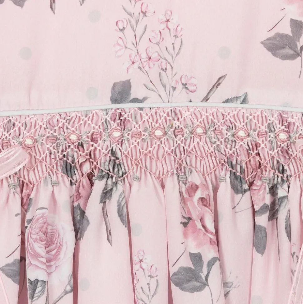 Girls Pink Floral Smocked Dress Set