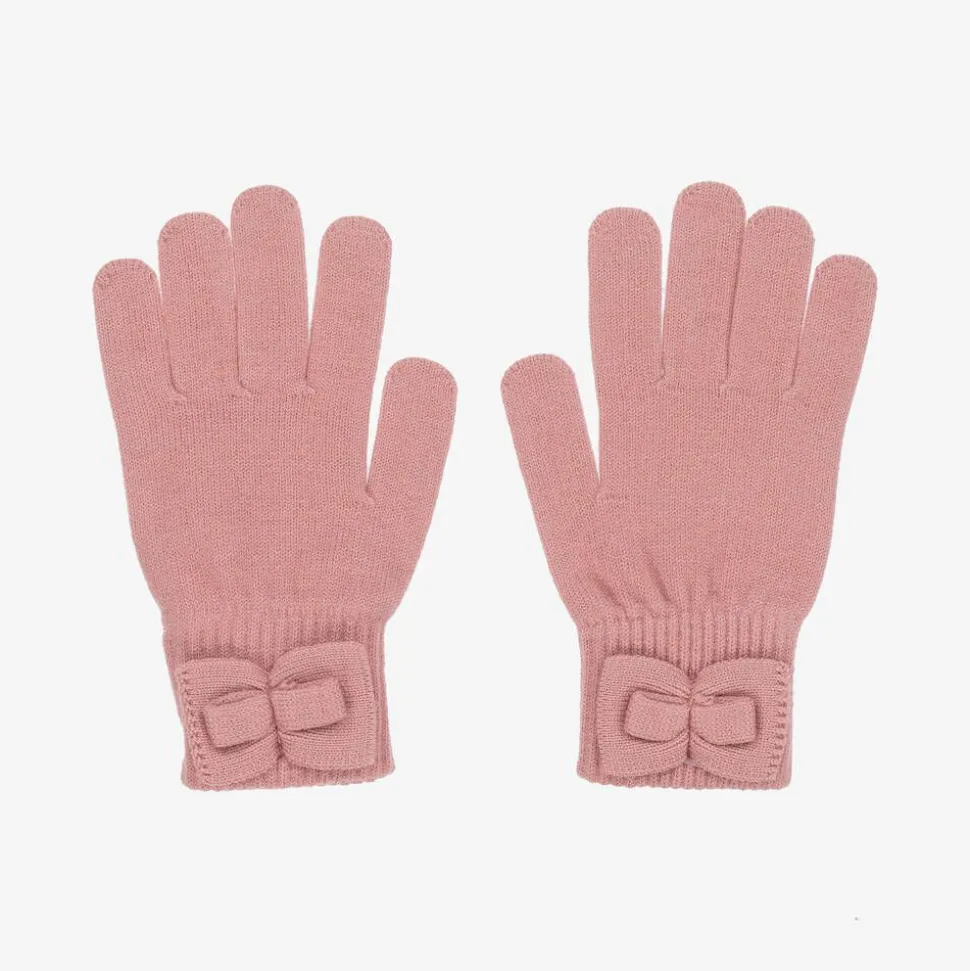 Girls Pink Knitted Bow Gloves