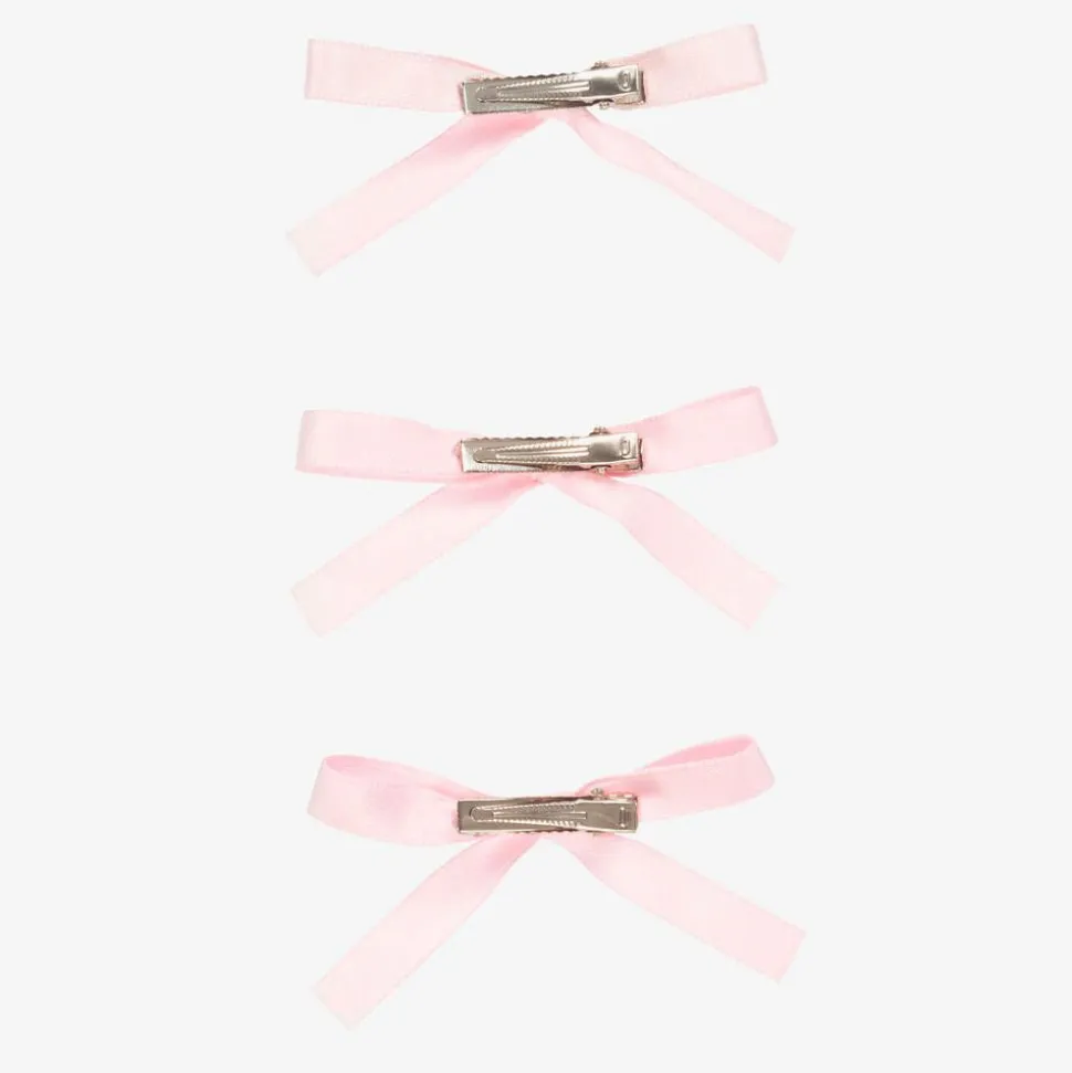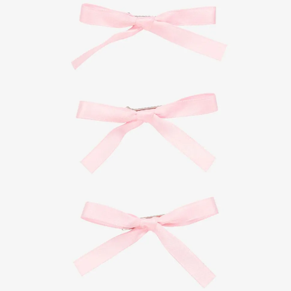Girls Pink Satin Bow Hair Clips (3 Pack)