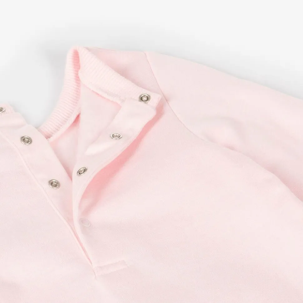 Comfortable and stylish for little girls, this pastel pink sweatshirt dress from MARC JACOBS is made in mid-weight cotton jersey. It has a gentle A-line shape, ribbed trims and a cosy fleece feel against the skin. Popper fastenings on the back help with over-the-head dressing. Adding an unmistakable designer touch, it has the American brand's iconic Snapshot bag printed in a shiny gold trompe-l'oeil design across the front. Ideal as a gift, smaller sizes come with a branded box.