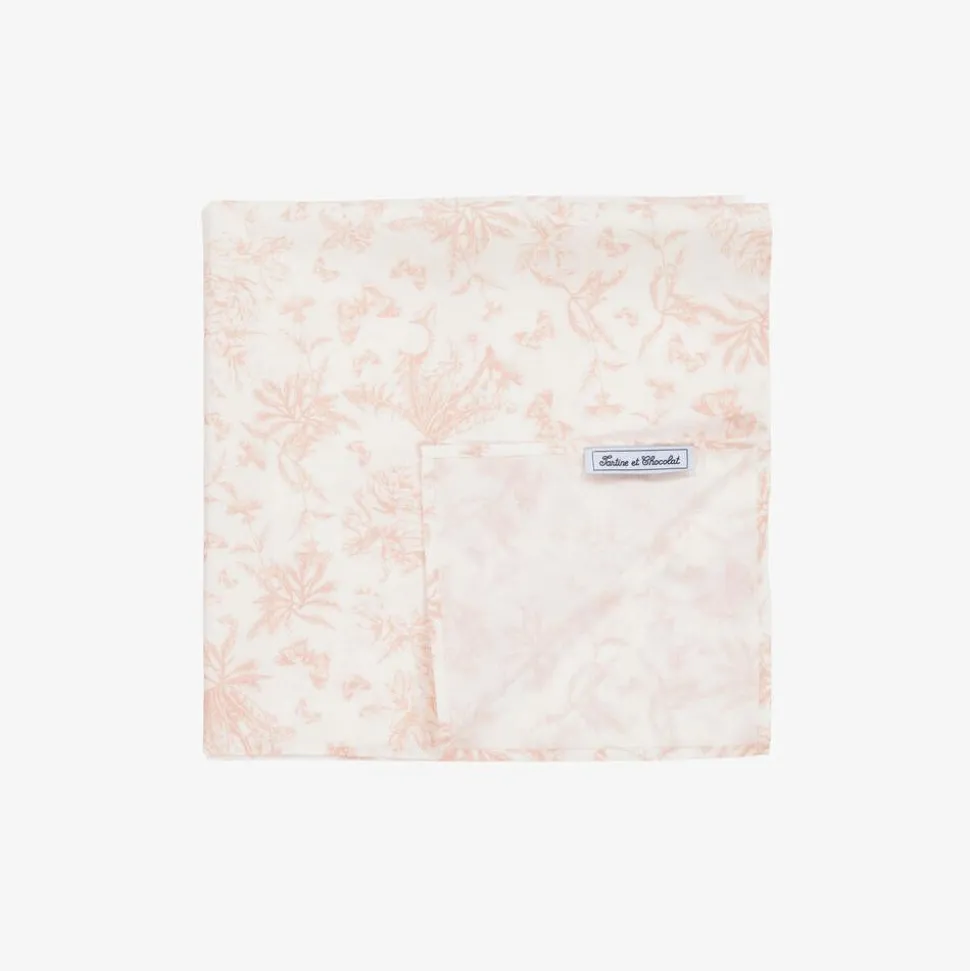 A white cotton scarf for girls from Tartine et Chocolat, patterned with an elegant Toile de Jouy print in a lovely shade of pink. Beautifully lightweight, this stylish accessory can be worn around the neck or over the head, adding a charming finishing touch to any outfit.