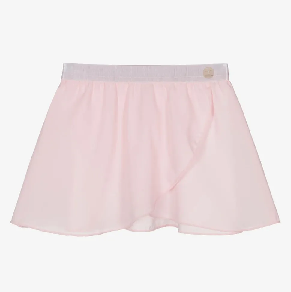 Ideal for dance class, this pale pink wrap skirt for girls is designed by Danskin. Sheer, lightweight and beautifully floaty for twirls and pirouettes, it has a comfortable, elasticated waistband with a pretty sheen.
