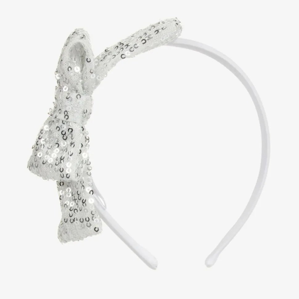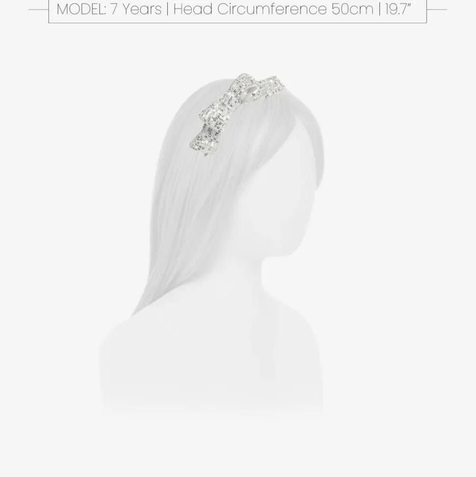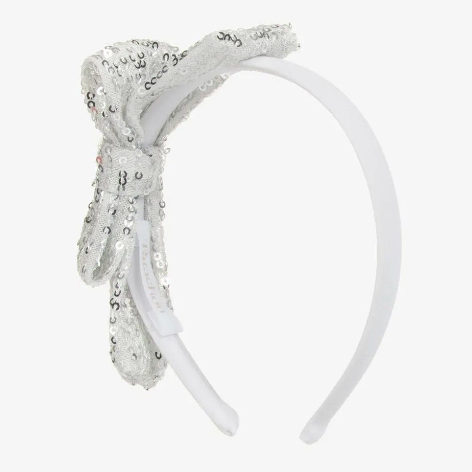 A beautiful finishing touch to her special occasion outfit, this silver hairband for girls by Patachou is exclusive to Childrensalon. The flexible, fabric-covered band is topped with a gorgeous white bow, covered in sparkly sequins.