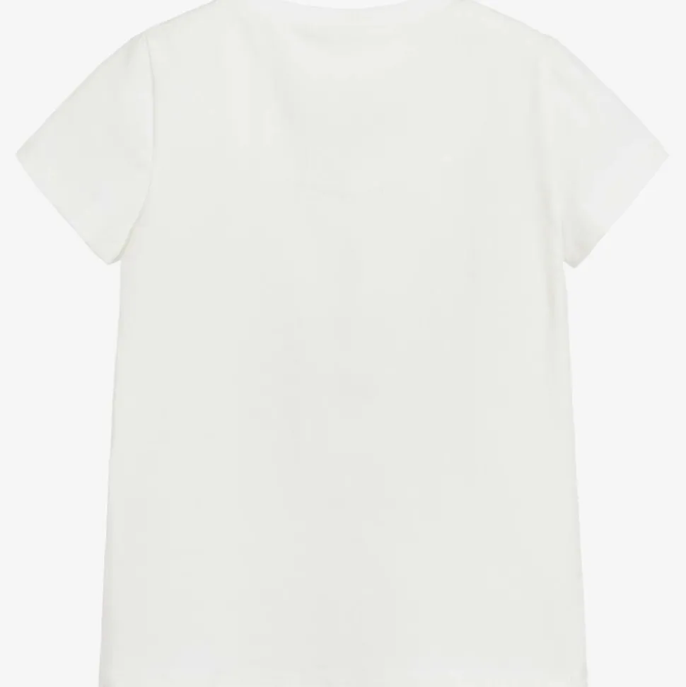 Girls White Cotton Sequin Butterfly T-Shirt