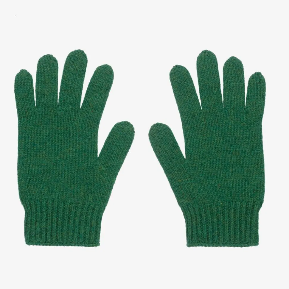 Green gloves for boys and girls by luxury Italian brand Gucci. Made in soft wool, they have ribbed trims and the brand's GG logo embroidered on the back of the hands.