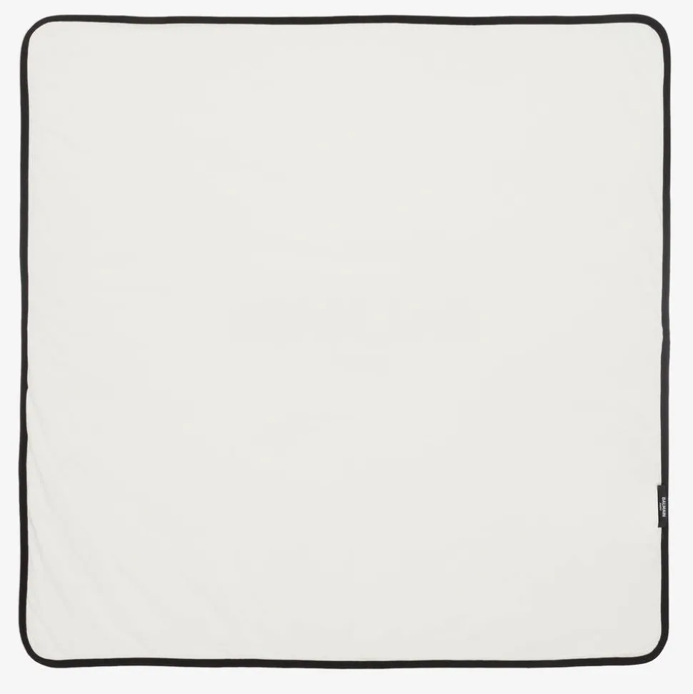 In stylish shades of ivory and black, this babysuit gift set for boys and girls is from luxury designer Balmain. Made in soft cotton jersey, the long-sleeved babygrow has sleek contrast trims and cosy enclosed feet. Poppers fasten easily on the back. The two-tone bodysuit has an easy envelope neckline and popper closures between the legs. Completing the head-to-toe look, is a matching layette hat, styled with a turned-up brim. All items, including the lightly padded jersey blanket, are printed with a statement-making Balmain Paris logo. Presented in a gift box, this four-piece set is a great choice for welcoming a little one into the world.