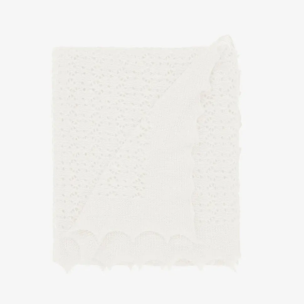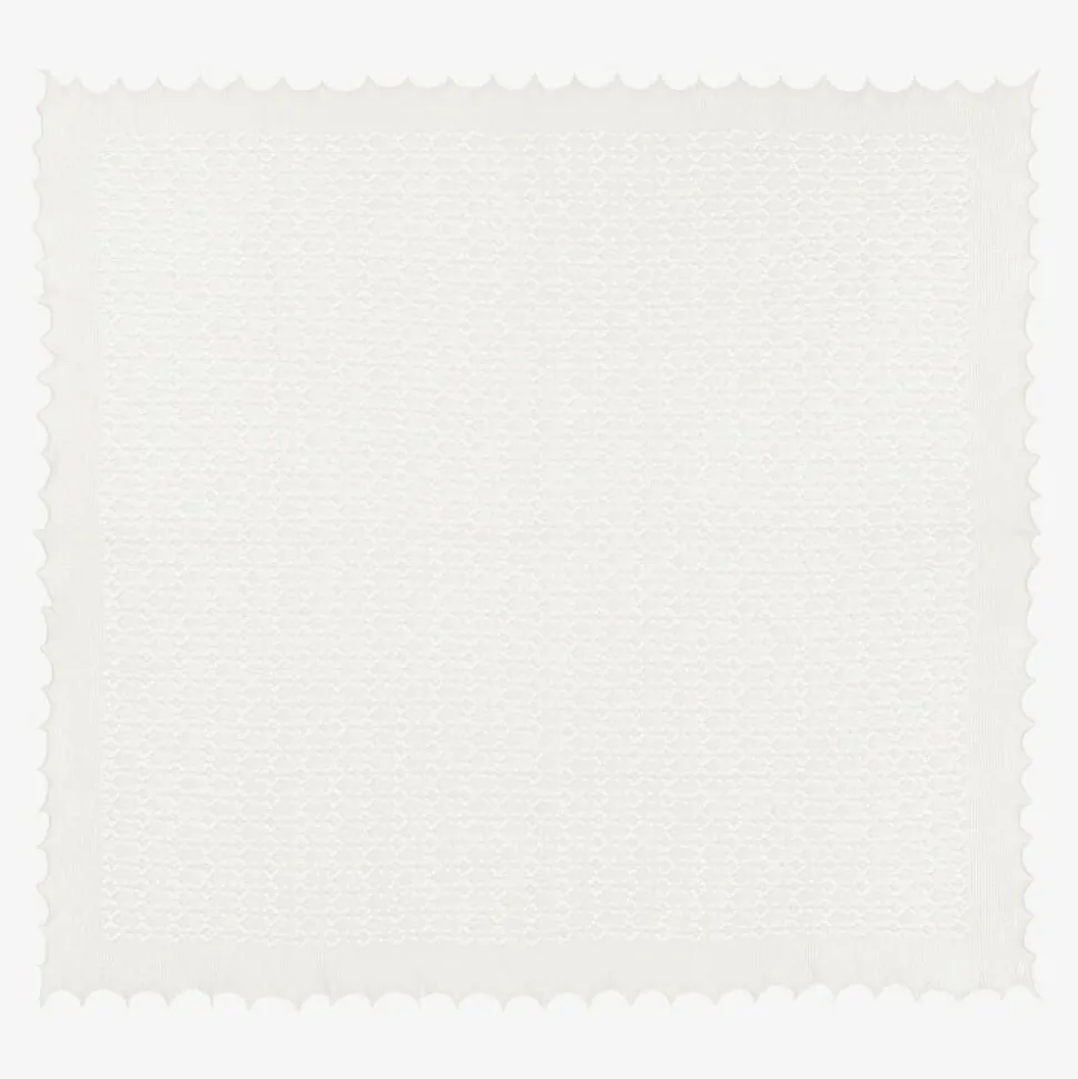 Beautiful ivory shawl for baby boys and girls by G.H.Hurt & Son is presented in a charming gift box. Handcrafted by artisans on centuries-old wooden frames, it is knitted in sumptuously soft cashmere with a gorgeous lacey design. Elegantly hand finished with scalloped edges, this traditional shawl is cosy, comfortable, and will make a wonderful heirloom.