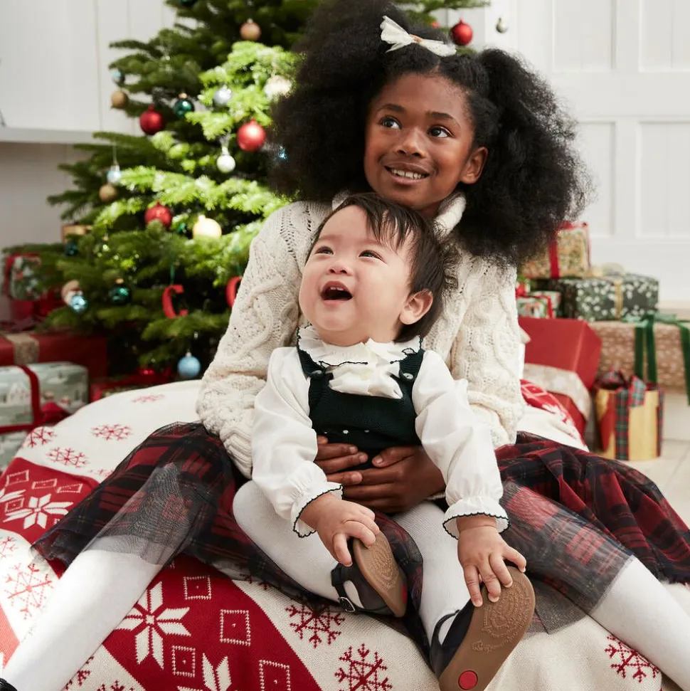 Lovely ivory tights for boys and girls, by Tartine et Chocolat. Knitted in a soft and stretchy cotton blend, they have a black logo underneath each foot for a subtle branded touch.