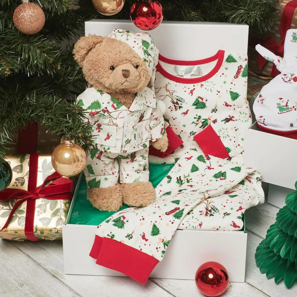 Lovely to cuddle, this gorgeous Powell Craft teddy bear has soft faux fur, beaded eyes and a stitched nose. He is wearing festive print pyjamas, decorated with Christmas trees and Father Christmas on his sleigh and a sweet nightcap. For a fun coordinating bedtime look, matching pyjamas are available from the designer's collection for your little one to wear.