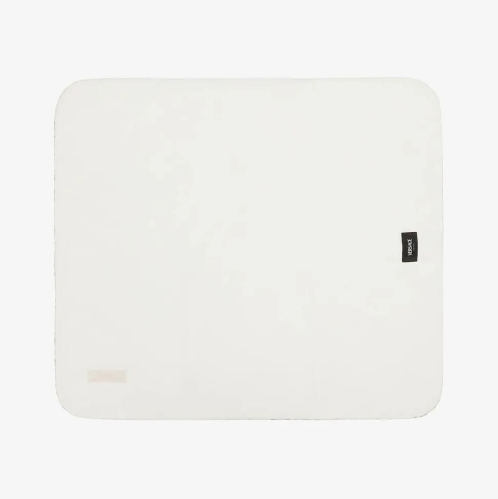 A gorgeous ivory and grey blanket for baby boys and girls by Italian designer Versace. The silky smooth front is patterned with the brand's distinctive Barocco print whilst the jersey back is super soft.