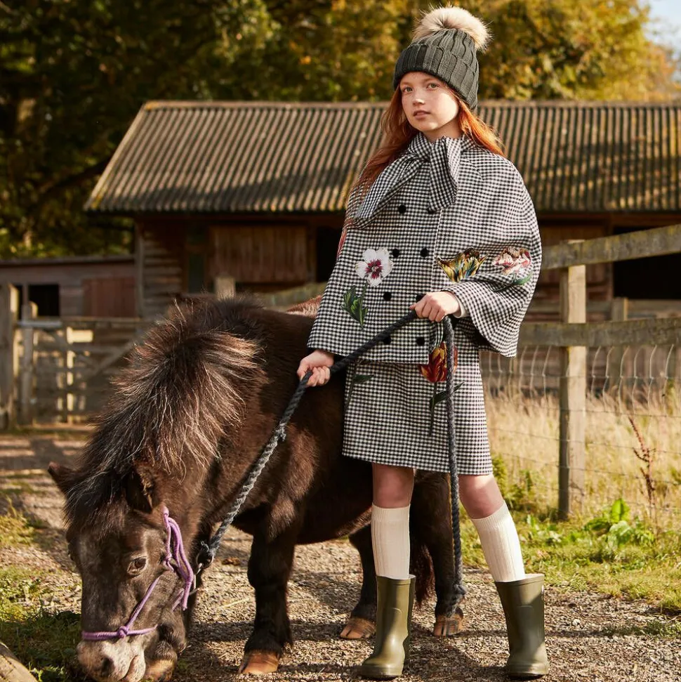 Khaki green rain boots for boys and girls by Danish brand CeLaVi, made from natural rubber. They are fabric lined and have a uniquely developed sole, so are comfortable to wear and support growing feet. There are reflective trims on the heel and side for added safety.