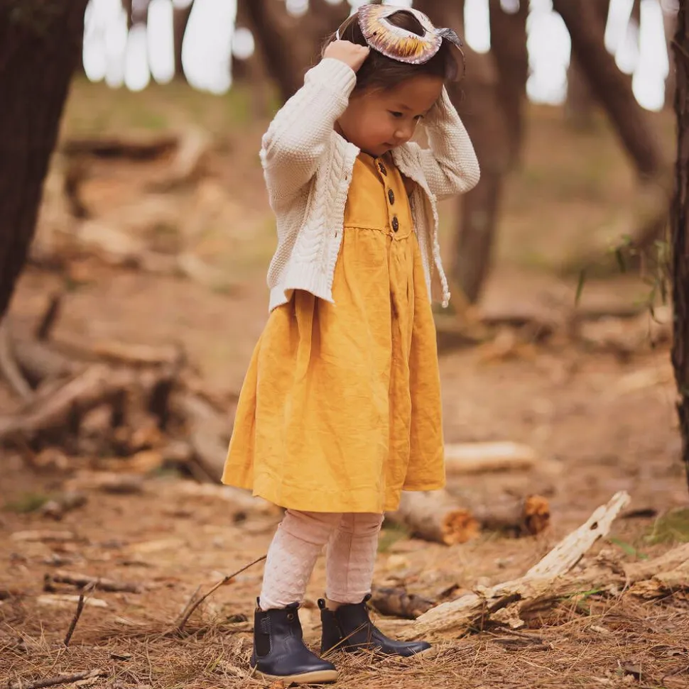 Navy blue ankle boots for little boys and girls by Bobux IWalk, in a classic Chelsea style. Made from smooth leather, they have a black elasticated panel on the side and a side zip fastening. Approved by podiatrists, they are lined in soft leather, have practical pull tabs at the ankle and non-slip rubber outsoles for good grip.