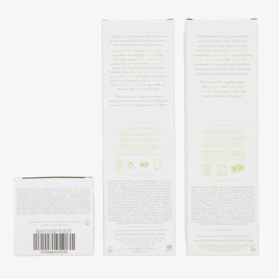 A lovely gift set to welcome precious boys and girls by Little Butterfly London, gentle enough to use from birth. Certified organic, the set comprises body lotion, nappy change cream and bubble bath, all designed to cleanse, nourish and soothe even the most sensitive of skin. Delicately scented with naturally derived ingredients, it is hypoallergenic and suitable for eczema-prone skin.