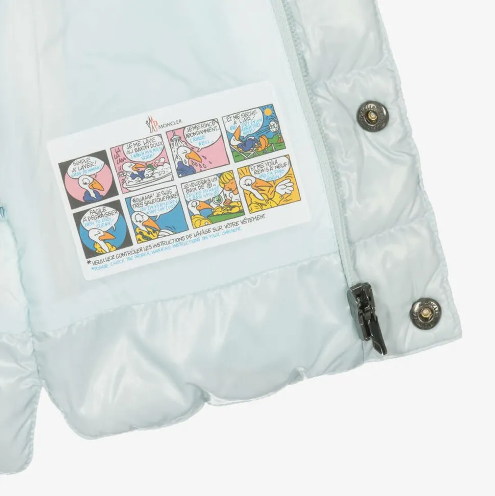 By luxury brand Moncler Enfant, this pale blue, water repellent puffer gilet for little boys and girls is padded with beautifully soft down. Ideal for colder days, it fastens with logo-embossed poppers and a hidden zip on the front to lock in warmth. There are zipped front pockets, and the label's famous felt logo badge is appliquéd on the chest for a distinctive designer look.