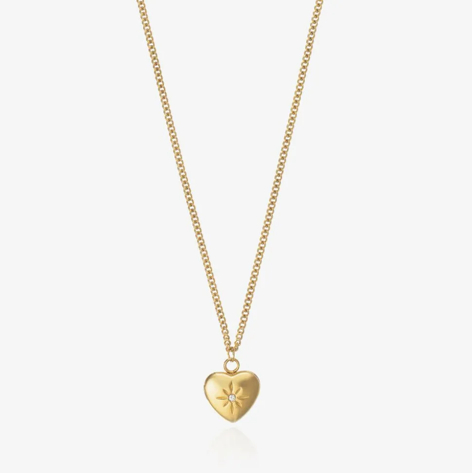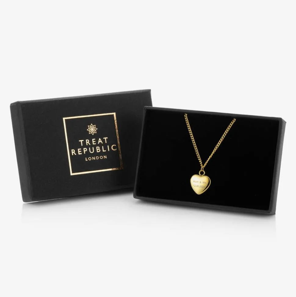 Gold plated necklace for boys and girls by Treat Republic, ideal as a gift. The heart-shaped pendant can be thoughtfully engraved with their name and a message or date of your choice, personalising the jewellery with a sentimental memory. The other side of the pendant has an engraved celestial star and diamanté in the centre. The adjustable chain allows it to be worn at different lengths as your child grows.
