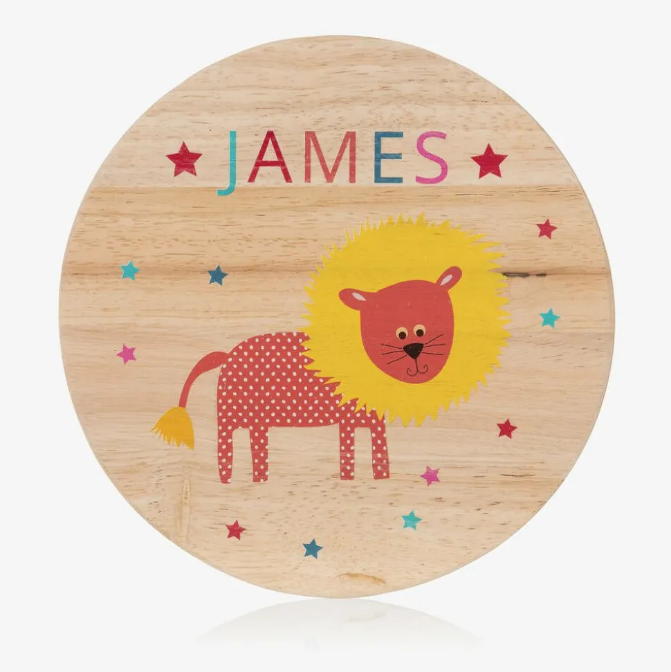 From Treat Republic, a round wooden stool for little boys and girls, with a friendly lion and colourful star design. Personalise with your little one's name to make a unique and delightful keepsake. A lovely addition to a nursery or play area, it is an ideal size for little legs. Easy to assemble, the four legs are designed with rubber feet providing a secure and stable seat for reading or playing.