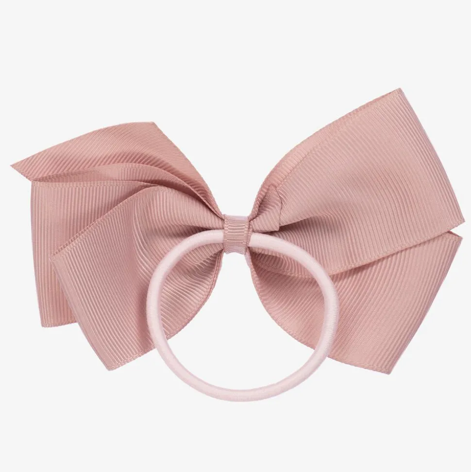Dusky pink hair elastic for girls from Peach Ribbons. Lovely to complete an outfit, this pretty accessory has a large handmade grosgrain ribbon bow detail.