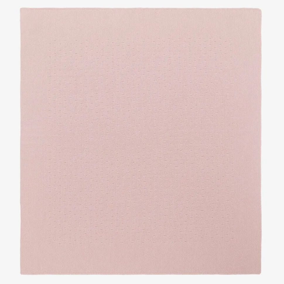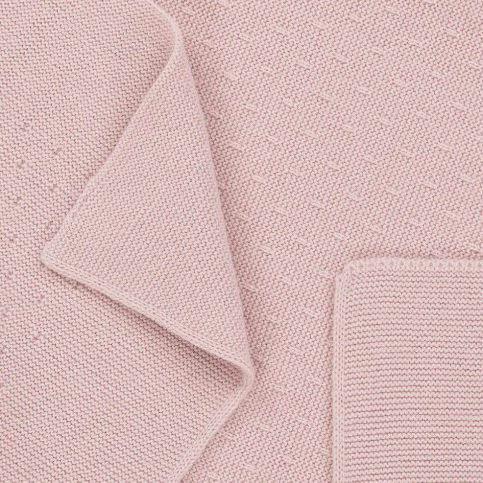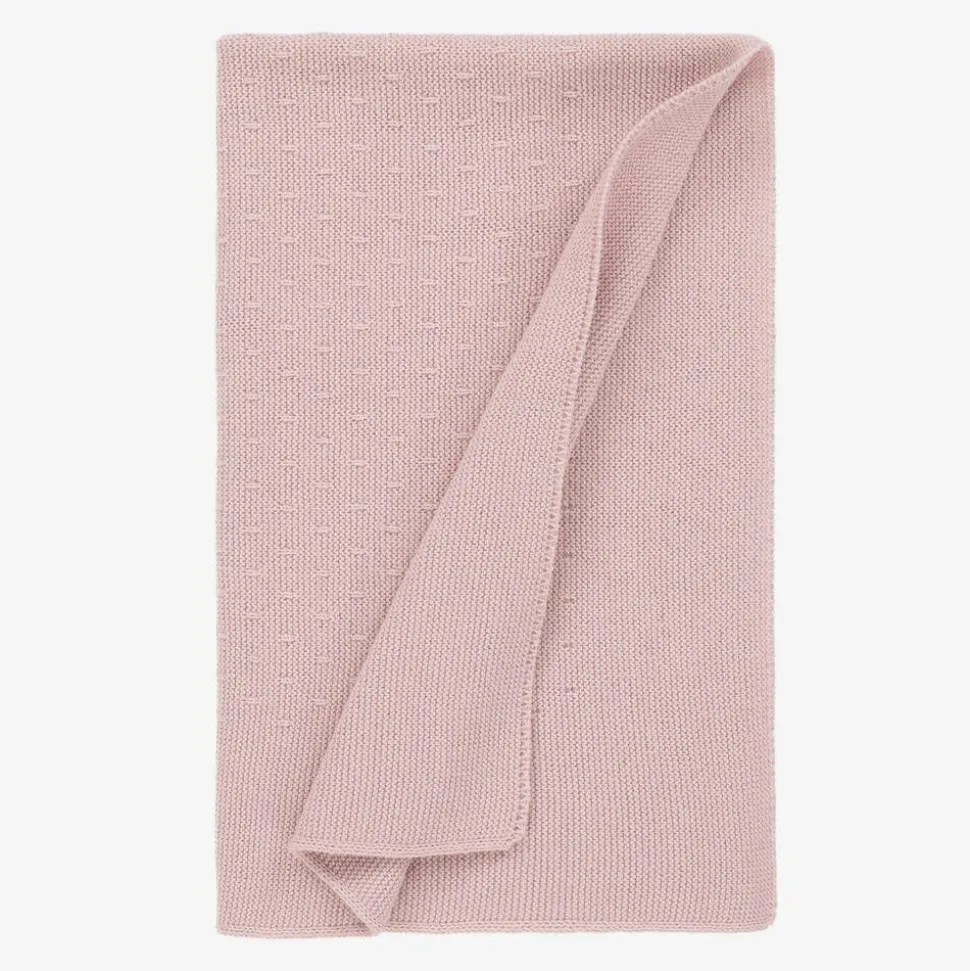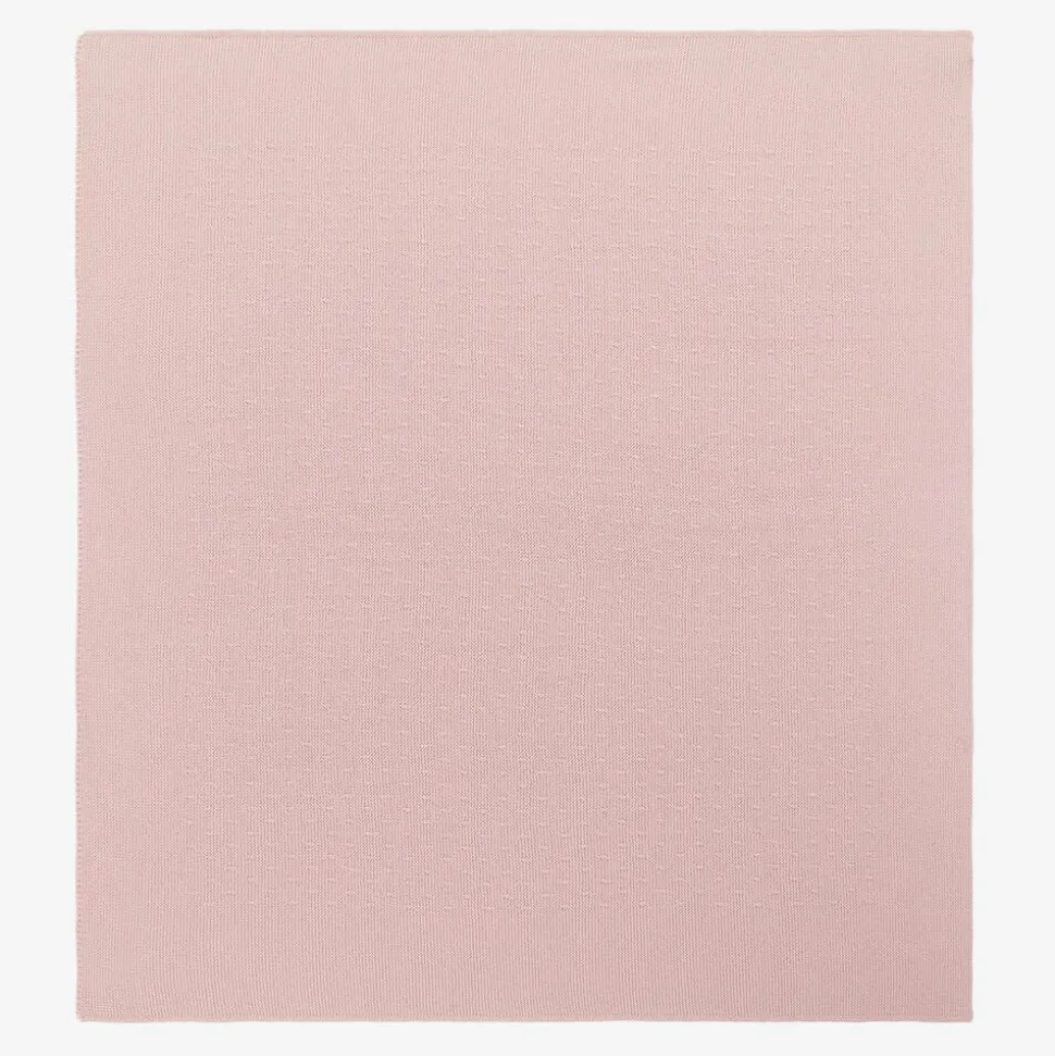 Dusky pink blanket for baby girls by Spanish brand Mebi. Made in a soft knit with a subtle line design in the centre, it is ideal for use in the car seat or stroller and also makes an attractive nursery accessory.