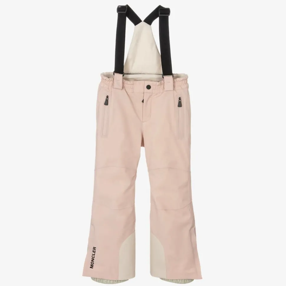 High performance pink ski salopettes for girls by luxury designer, Moncler Enfant. Forming part of the brand's esteemed Grenoble collection, these durable ski trousers are designed for intensive sport in harsh conditions, with Primaloft technology for superior breathability and thermal insulation. The garment is fitted with impressive RECCO technology, the advanced rescue technology to help locate lost skiiers. Bold branding on one leg completes the slope-ready style.
