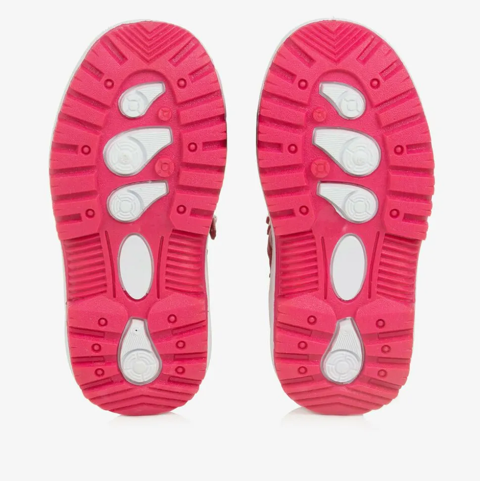 Designed by Playshoes, a bright pink pair of snow boots for girls, with a sweet white snowflake pattern. Soft and cosy, they have water repellent fabric uppers, a fleecy lining and deep tread rubber soles. There are light reflective trims on the front, drawstring cuffs and useful side zips.