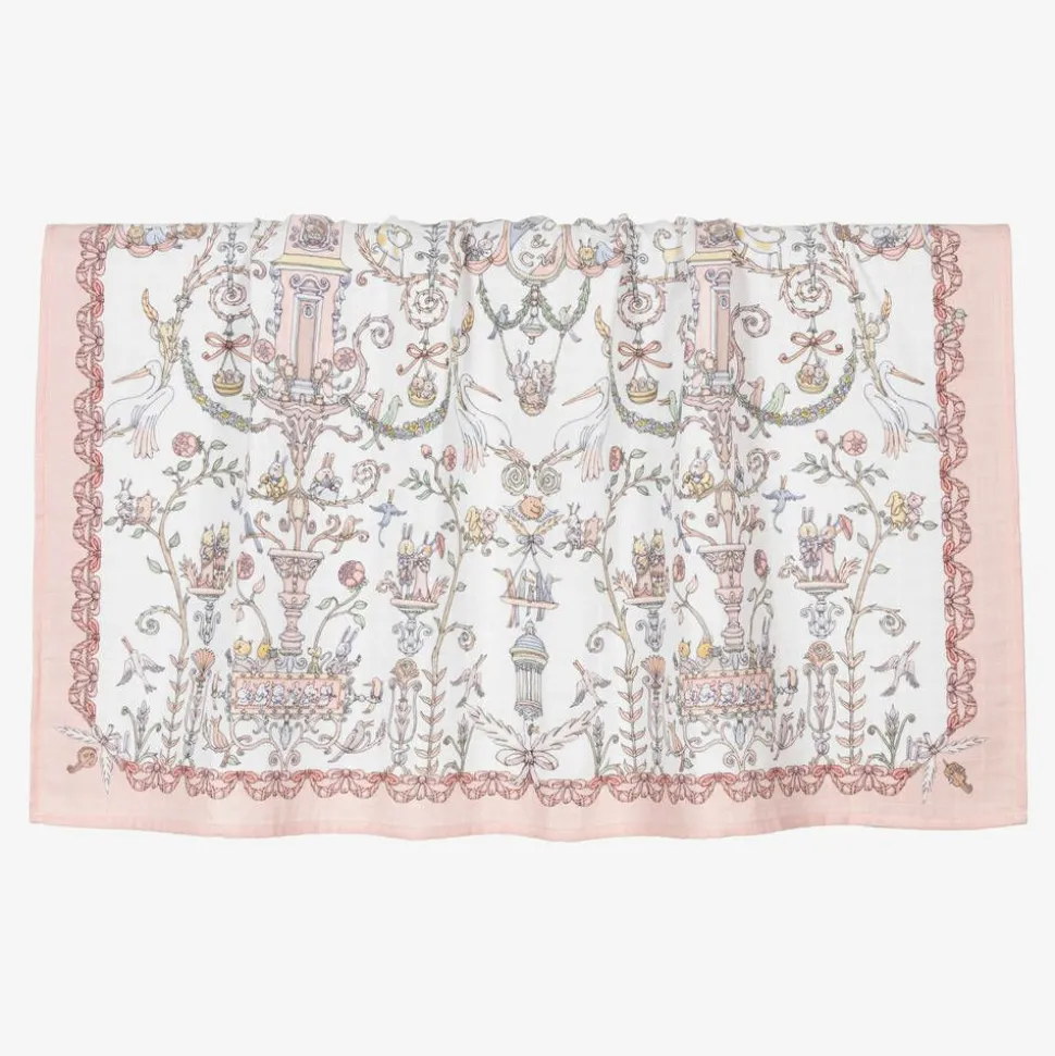 A classical pink swaddle for baby girls by Atelier Choux Paris, made from soft organic cotton muslin. Inspired by the designer's French heritage, it has a charming toile de Jouy pattern with sweet animals to complement the nursery. It is beautifully soft and lightweight, making it ideal as a changing surface, a blanket in warmer months and a breastfeeding cover to give mothers privacy.