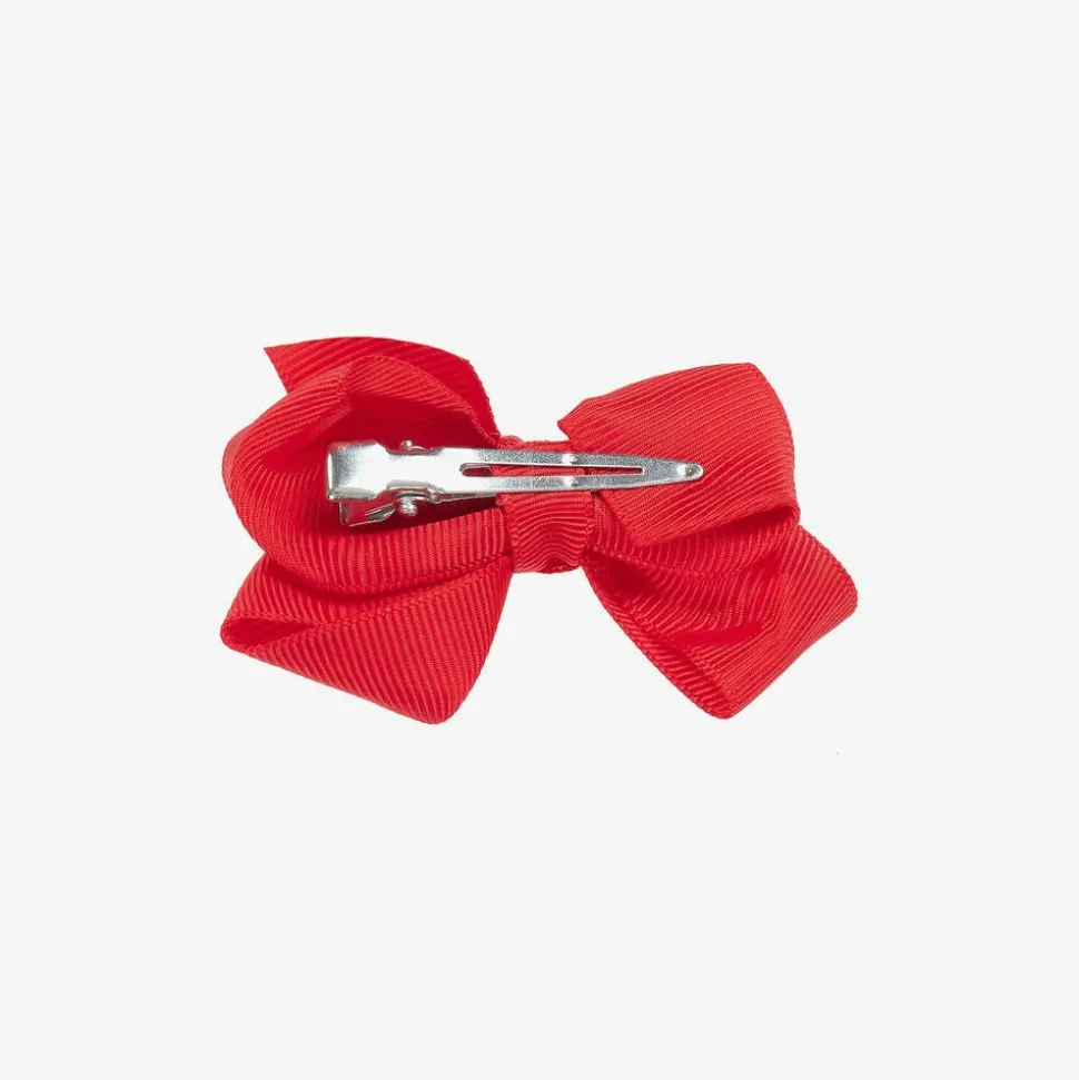 Sweet red bow hair clip for girls from Bowtique London. A lovely accessory to complete an outfit, it is handmade in soft grosgrain ribbon and set on a slide-in metal clip.