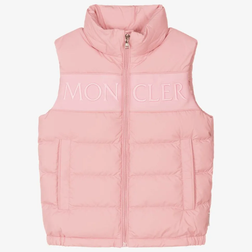 Cool for layering, this pale pink gilet for teen girls is from luxury designer Moncler Enfant. The brand's signature logo is embroidered over the front panel to create impact, and there is a branded tab on one side seam. This gilet is water-repellent, with cosy down padding and pockets that secure with poppers. A zip fastens on the front and a hood packs into the high neck.