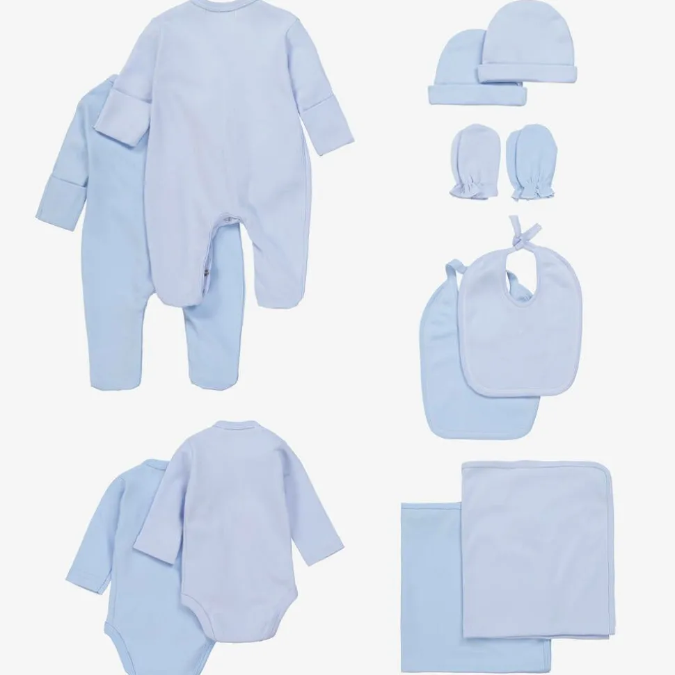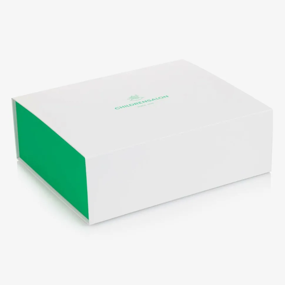 Exclusive to Childrensalon, this adorable hamper for newborn twin boys is designed by Childrensalon Hampers. Introducing tiny twins to the world with a thoughtful surprise, it comes with two of every item. The Beau Kid popper fastening babygrows and bodyvests are all embroidered with sweet crests on the chest, with 'Prince' in the centre for a cute touch. Layette hats, scratch mitts, bibs, hooded blankets and snuggly Aurora sheep rattles all are included in this lovely set, presented in a beautiful gift box.