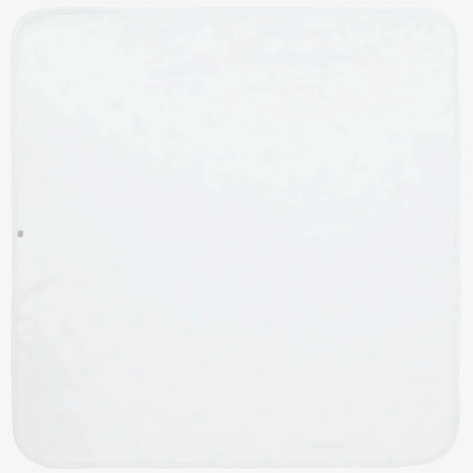 Beautifully soft white and blue blanket for baby boys by Kissy Kissy, made in a double layer of Pima cotton jersey. The front side has a sweet pale blue mummy and baby giraffe pattern and blue stitching detail around the edge. Adorable as a nursery accessory, it is also ideal for use in the car seat or stroller.