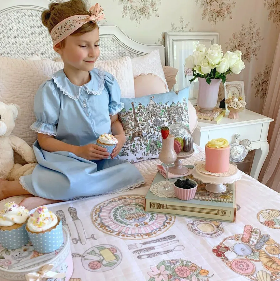 Stunning white swaddle for baby boys and girls from luxury French brand Atelier Choux Paris, made in soft organic cotton muslin. Illustrated by famed Swedish artist Mattias Adolfsson, the front has a beautiful image of a French table setting, with traditional food and drink. It can be used as a light blanket, changing surface, or for added privacy while breastfeeding. It comes with a lovely gift box.
