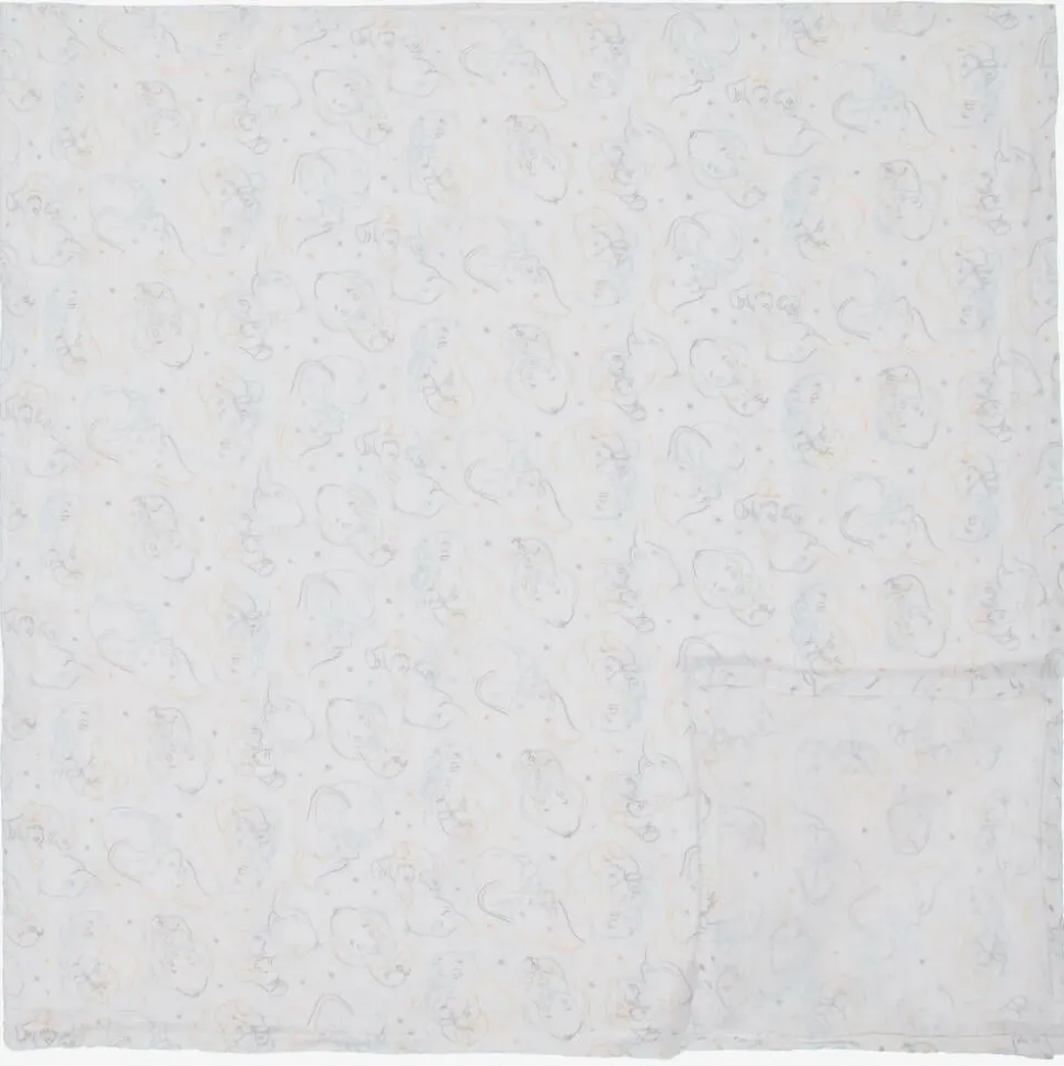 Three large white swaddle blankets for baby boys and girls by aden + anais, made from beautifully soft cotton muslin. From the Disney collection, each one has a cute Dumbo themed print. Versatile, they can be used as a blanket, burping cloth or nursing cover.