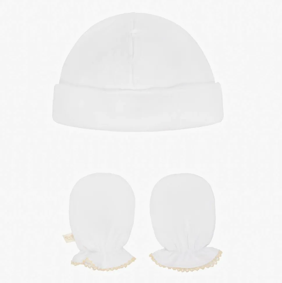 White Pima Cotton Baby Hat & Mittens Set
